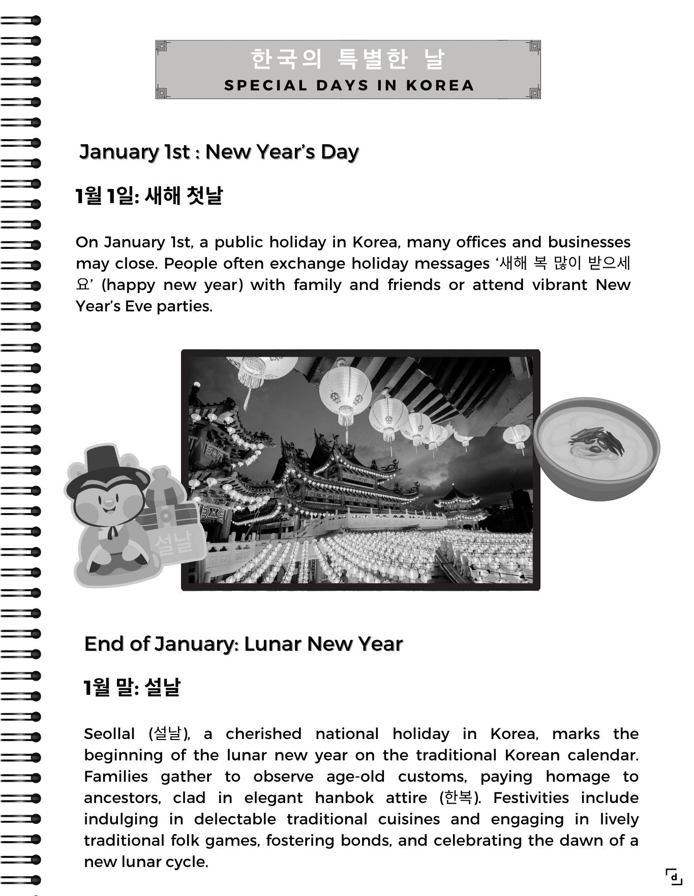 Each month introduces a unique aspect of Korean culture, such as seasonal traditions, holidays, cultural customs, and commonly used Korean expressions you’ll hear in daily life in Korea. Along the way, you’ll naturally become familiar with Korean words and phrases that locals actually use.