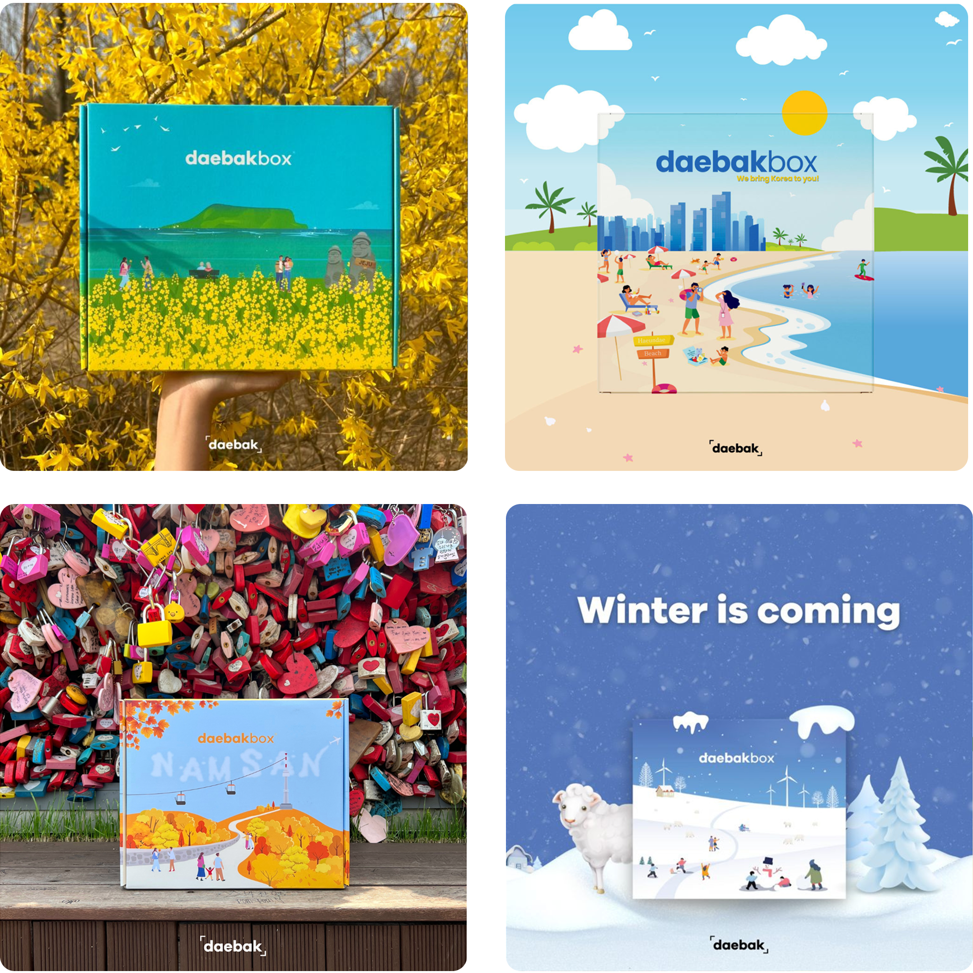 Each season, Daebak Box delivers trendy Korean lifestyle brands — from beauty and snacks to fashion and everyday essentials. Discover the products loved in Korea and experience Korean lifestyle from home.